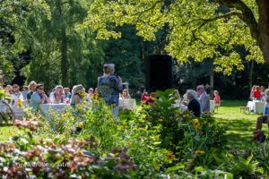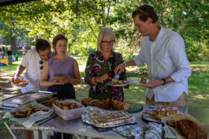 Bij de prachtige bloementuin stonden witgedekte tafels rondom de oude esdoorn. Onder de stralende septemberzon genoten 150 personen van de heerlijke gerechtjes, met culinaire hoogtepunten, bereid door buurtbewoners met een culinaire passie. Dankzij de inzet van talloze vrijwilligers was deze zonnige dag een fantastisch feest midden in de natuur.